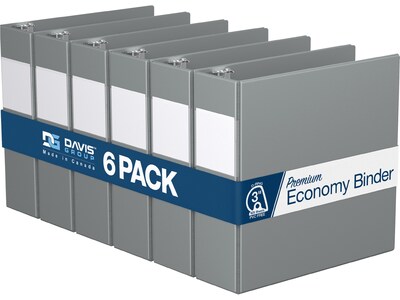 Davis Group Premium Economy 3" 3-Ring Non-View Binders, D-Ring, Gray, 6/Pack (2305-07-06)