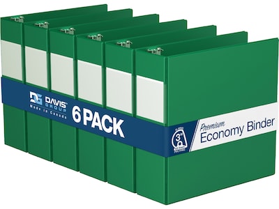 Davis Group Premium Economy 3" 3-Ring Non-View Binders, D-Ring, Green, 6/Pack (2305-04-06)
