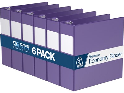 Davis Group Premium Economy 3" 3-Ring Non-View Binders, D-Ring, Purple, 6/Pack (2305-69-06)