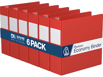 Davis Group Premium Economy 3" 3-Ring Non-View Binders, D-Ring, Red, 6/Pack (2305-03-06)