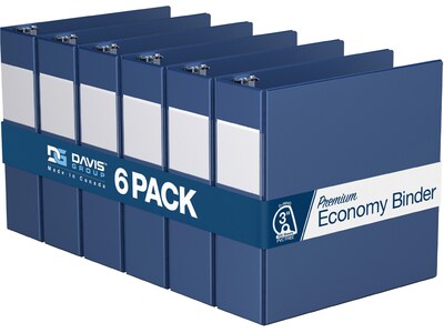 Davis Group Premium Economy 3" 3-Ring Non-View Binders, D-Ring, Royal Blue, 6/Pack (2305-92-06)