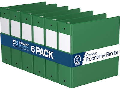 Davis Group Premium Economy 3" 3-Ring Non-View Binders, Green, 6/Pack (2314-04-06)