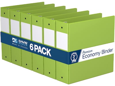 Davis Group Premium Economy 3" 3-Ring Non-View Binders, Lime Green, 6/Pack (2314-24-06)