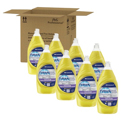 Dawn manual pot and pan detergent is a highly concentrated liquid dish soap that has grease-fighting power for tough jobs at your business. This highly concentrated liquid dish soap is specially formulated to help remove greasy food soils from pots, pans and utensils. Dawn dish detergent can work as an all-purpose cleaner for a variety of task areas, including three-compartment sinks (wash sink), counter tops, dining, cooler doors, windows (outside and inside), portable equipment, trash receptacles, coffeemakers, drive-thru menu boards, and tile walls.