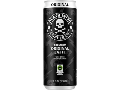Death Wish Coffee Co. Original Latte Cold Brew Coffee Can, Medium Roast, 11 fl. oz., 12/Carton (LRLATE12)