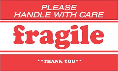 Decker Tape "Fragile/Please Handle with Care/Thank You" Label, 2" x 3", 500/Roll (DL1271B)