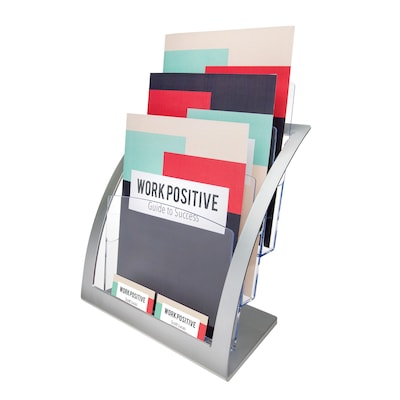 Deflect-O 3-Compartment Plastic Magazine Rack, Silver (DEF693745)