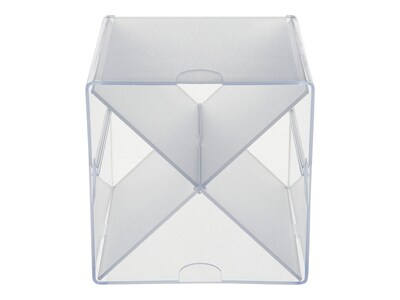 Keep a variety of office supplies in one convenient place with this cube organizer. The stackable design allows for this container to be integrated with other compatible cubes for a customized arrangement. This Deflect-O stackable X-divider clear cube organizer is made from sturdy material for added durability and is transparent, so you can view contents at a glance.