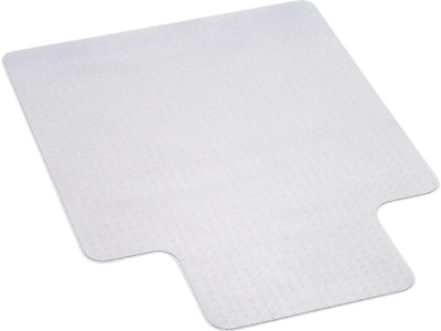 Shield carpet from the wear and tear of rolling an office chair over it with this protective mat. Made for low-pile carpets, this chair mat comes with a standard lip size designed to fit most homes and offices. The studded back helps this mat to stay in place as you move around. This Deflect-O chair mat is made from vinyl.