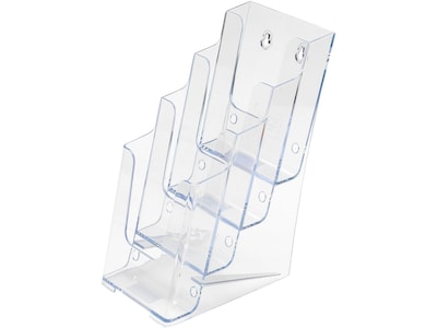 Set this four-tier leaflet-size clear literature holder on a waiting room table or counter to display brochures and pamphlets. This Staples four-tier clear literature holder is mountable to save space or can be left standing, offering versatility.