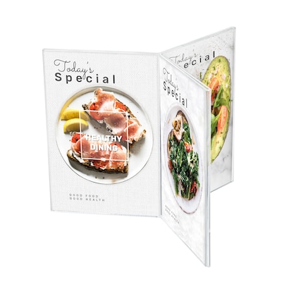 Holds 4"W x 6"H literature 3 Panel Ad Frame Tabletop Sign Holder and Displays 6 Signs or Ad Notifications. Made of clear acrylic, this sign makes a great-looking display piece and is a terrific value. Perfect for use in retail shops, classrooms, offices, and trade shows.