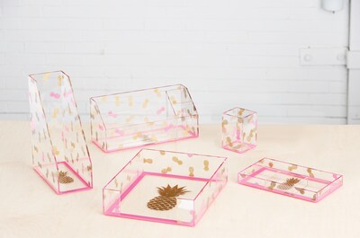 Deflecto® Desklarity™ 5-Piece Desk Set, Precisely Pineapple, Pink/Metallic Gold (DEF-41695)