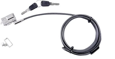 - Package Content: Keys, peripheral cable security trap, security cable (6 ft), wedge cable lock
