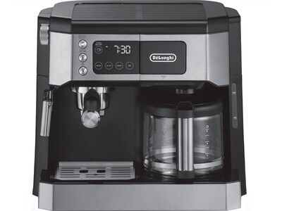 DeLonghi All-in-One 10-Cup Coffee and Espresso Machine Combination, Black/Stainless Steel (COM530M)