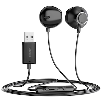 Delton 10E Stereo USB In-Ear Computer Headset with Microphone, Black (DWH10E)