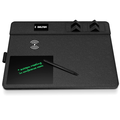 Delton D101 Mouse Pad Workstation with Qi Wireless Charging Pad, Digital Notepad, and Phone Stand, Black (DMP101WC)