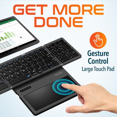 - Enhance your productivity on the go with Delton’s foldable and portable Bluetooth keyboard, designed to be easily stored and ideal for travel.