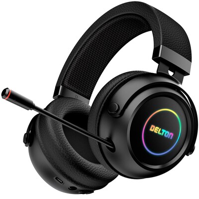 The Delton Bluetooth computer headset is built for long-lasting performance, offering up to 35 hours of continuous talk time with RGB lights off and 23 hours with RGB lights on and maximum volume. Its powerful battery ensures extended usage, while the fast-charging capability allows you to fully recharge the headset in just 2 hours using the included Type-C USB cable. Whether you're in the middle of a gaming session or an important work meeting, the headset keeps you powered up. The integrated RGB lighting adds a customizable touch to your setup, letting you personalize your headset to match your style.