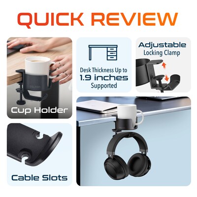 Delton H22 Under Desk Cup Holder and Desk Hook for Headphones, Black (DHSCH22)