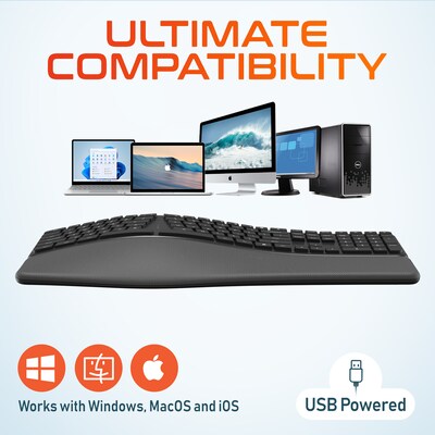 - Portable ergonomic keyboard features a full-size layout, ensuring all the keys you need for efficient typing and navigation are readily available