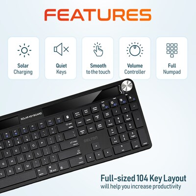 Delton KB90 Wireless Rechargeable Solar (Light) Powered Keyboard, Black (DKBSLR90)