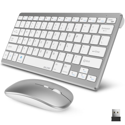 Delton N35 Mini Wireless Keyboard and Optical Mouse Combo, Silver/White (DKMKITMIN35-WW)
