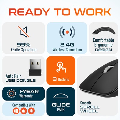 - Includes: wireless mouse, auto-pair dongle, user manual