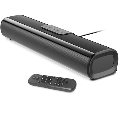 - Upgrade your workspace and boost your productivity with our sound bar featuring a convenient remote for easy operation from across the room.