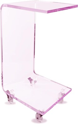 Designstyles Luxurious Acrylic C-Shaped Table on Wheels, Pink (DST-ACTPE)