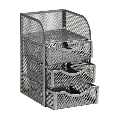 Mind Reader 4-Compartment Metal Desk Organizer, Silver (MESHMINI-SIL)