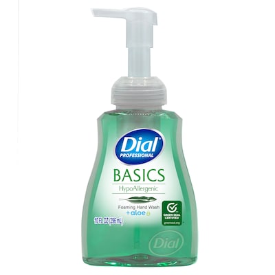 Dial Basics Foaming Hand Wash with aloe, and moisturizers, is mild and gentle on the skin. This dermatologist-tested and hypoallergenic formula leaves skin feeling healthy and is perfect for any commercial setting.