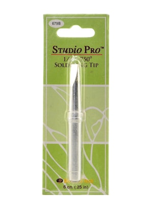 The Studio 100 Soldering Iron is an economical choice for production, studio, and classroom use. This 100 watt iron has built-in temperature control, so there-s no need for a temperature control device.This high quality tool also features:1/4 in. (750 degrees F) iron chisel tip, perfect for stained glass projects-Stay cool- insulated comfort grip handleLightweight designQuick change nut for easy tip changesReplacement tips are sold separately.