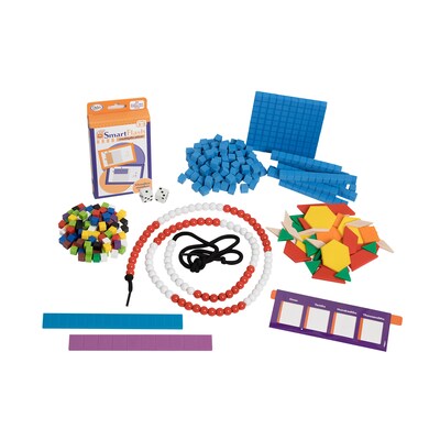 Designed for individual students, these kits include hands-on resources AND dozens of digital activities to keep every student on track. Each kit features grade-level appropriate math manipulatives as well as innovative activities that provide instruction using these tools. Use in the classroom with students who need additional support. Or use in after-school or summer school settings. Additionally, parents will also be able to support their children with these activities for at-home learning.Access digital activities through the link included in each kit. Each kit packaged in a sturdy, plastic container.Includes:• Centimeter Cubes, set of 100• Plastic Pattern Blocks, set of 50• Base Ten Blocks, 1 hundred flat, 10 ten rods, & 100 unit cubes• Place Value Slider, Ones to Thousands• Dot Dice, set of 2• SmartFlash Multiplication Cards, set of 57• Fraction Tile Number Line Set, 55 pieces• 100-Bead Number Line• 25 Activities (81 pages)