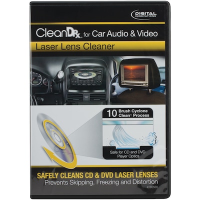 Digital Innovations' CleanDr for A/V Laser Lens Cleaner is designed to clean automotive CD and DVD players. The 10-Brush Cyclone Clean process removes dirt and dust buildup that causes audio and video dropout and distortion. Voice instructions are available in 3 languages.