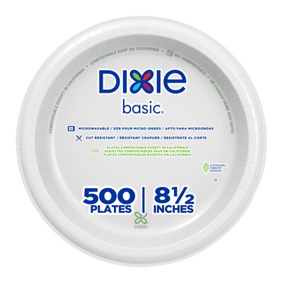 Dixie Basic 8.5" Paper Plates, White, 500/Carton (DBP09WCT)