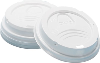 Keep hot drinks warm and palatable for longer with the secure plug fit of these Dixie plastic dome lids. Designed to securely fit over Dixie PerfecTouch or hot cups, these lids shield the beverages held within from the environment to slow their rate of cooling. The secure fit also reduces splashing and spillage, making these lids a great choice when drinking on the go or for use in office environments so that employees can enjoy their coffee around electronic equipment.