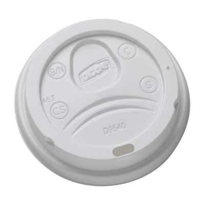 The Dixie plastic hot cup dome sip lid shields your coffee from the air to keep it hot and prevents spills to save your hands from the hot liquid. These white plastic lids have innovative features such as a hole for easy sipping and condiment identifiers that let you mark and identify the contents of each cup for easier sorting and distribution. Sold in cases of 1,000, these coffee lids fit standard 10-ounce Dixie Sage cups and are great for securing hot beverages in office break rooms, cafeterias and restaurants.
