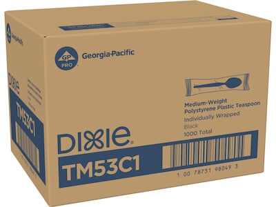 Dixie Individually Wrapped Polystyrene Tea Spoon, Medium-Weight, Black, 1000 Pieces/Carton (TM53C1)