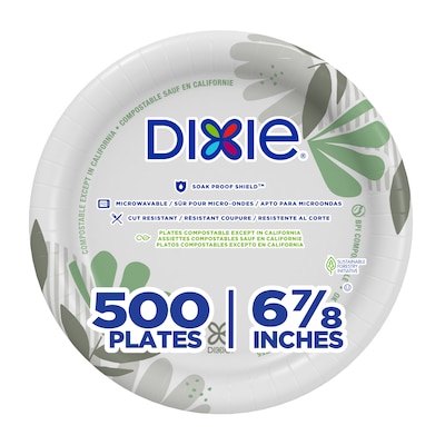 Dixie Pathways Medium weight paper plate has 6 7/8" Diameter and multilayer design that offers superior cut resistance and strength. Paper plate in leaf design is microwavable and sold as 500 per case.