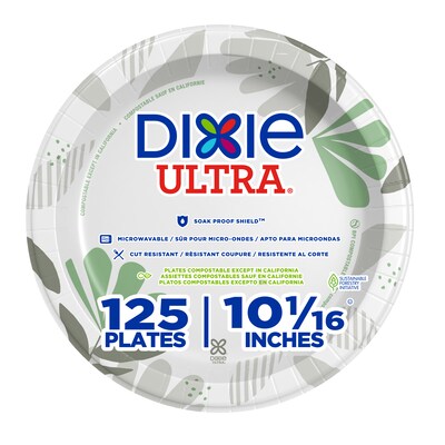 Give your guests the room they need for hearty meals with these Dixie Pathways paper plates. The heavyweight design of these paper plates features a multilayer design that resists cutting and holds up well to even heavier food. The 10-inch size ensures your guests don't leave the table hungry, and the plates can be microwaved for simple reheating. The stylish leaf design on one side gives these paper plates an elegant look that makes them suitable for a variety of occasions. Your guests don't leave the table hungry, and the plates can be microwaved for simple reheating.