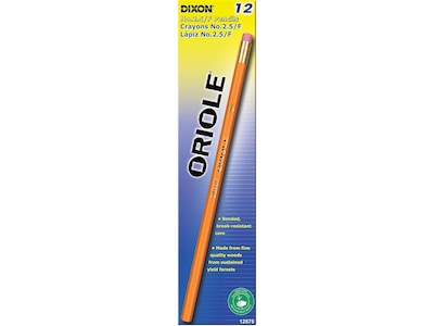 Keep your office or classroom stocked with these Dixon Oriole wood-cased pencils. The #2.5 medium lead is ideal for drafting, drawing or design work, and the latex-free erasers make it easy to correct mistakes. These Dixon Oriole wood-cased pencils are bonded to resist breakage.