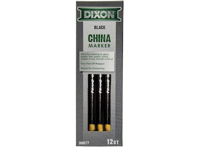 Create text and drawings that stand out using these black markers. Each one is paper wrapped and features a tear-string design, providing quick and convenient sharpening without the need for a sharpener, and the marks can quickly be wiped away afterward. These Dixon Phano China markers make bold, crisp lines on both porous and nonporous surfaces such as metal, paper, and rubber.