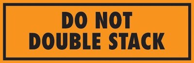 "Do Not Double Stack" Shipping label measuring 2" x 6" displays instructions boldly that attract attention, sold as 500 per roll.