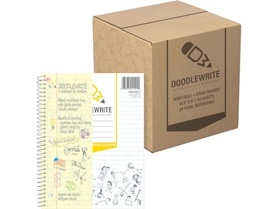 DOODLEWRITE 1-Subject Notebooks, 8" x 10.5", Wide Ruled, 50 Sheets, White, /Carton (11101CS)
