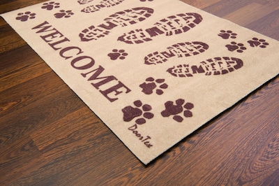 Doortex Welcome design indoor entrance mat to help prevent dirt and moisure entering the home on footwear. Stable vinyl backing. Machine washable. 24" x 39"
