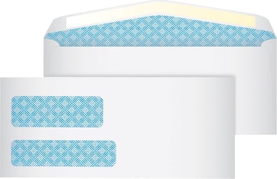Quill Brand® 500/Box Gummed Security Tinted #9 Double Window Envelope, 3-7/8" x 8-7/8", White (75042)