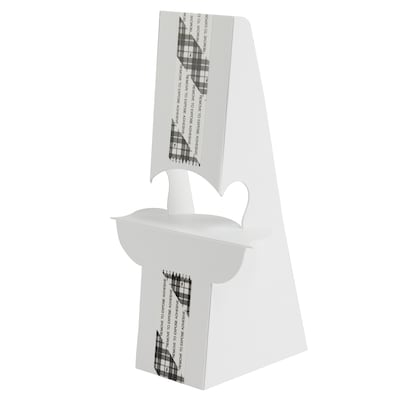 - 36 pt., 9 in tall - white SBS board - with double-wing easel, and peel & stick adhesive.