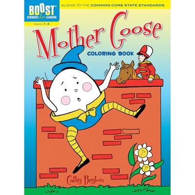 Dover® Boost™ "Mother Goose" Coloring book by Cathy Beylon includes little boy blue, humpty dumpty, peter, the pumpkin eater, marry and her little lamb. Book is ideal for grades 1 - 2/6 - 8 yrs and helps to teach a variety of basic skills.
