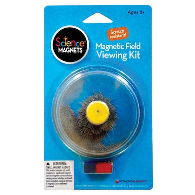 Mess-free! Steel filings are safely sealed in a scratch-resistant, transparent viewing tray for your investigations. Each kit includes rubber-coated magnets (0.75" disc magnet and 1" bar magnet) and filing-filled tray measuring 3.44"D. Sold as a pack of 3 kits. Ages 8+/Grades.