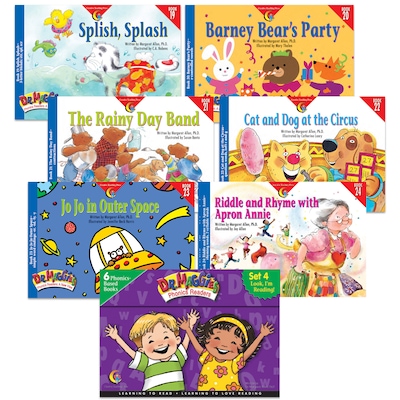 The Dr. Maggie's Phonics Readers series is rooted in current, cutting-edge phonics research. The combination of fun, high-interest stories that kids read over and over with a progression of skills that build from book to book allows children to read successfully while learning their letters and sounds, rather than only after they learn these concepts. Parents will be thrilled to see how eager their children are to read more and more. Each set includes six readers: Splish, Splash, Barney Bear's Party, The Rainy Day Band, Cat and Dog at the Circus, Jo Jo in Outer Space, and Riddle and Rhyme with Apron Annie, and a parent guide.